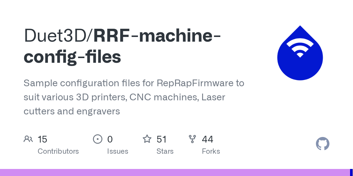 New release duet3d/reprapfirmware version 3.3rc1 release 3.3 release candidate 1 on github... I have not yet taken time to put the code on github but i will in the next weeks or so. 22/06/2019 · hi everyone, i'm making this message because i'm currently working on a duet3d custom integration. Contribute to duet3d/reprapfirmware development by creating an account on github. Duet3d limited has 47 repositories available. Follow their code on github. Reprapfirmware is a comprehensive motion control firmware intended primarily for controlling 3d printers, but with applications in laser engraving/cutting and cnc too. 09/11/2021 · this software is a port of the open source reprapfirmware produced by duet3d for their duet range of boards. Use at least double the power rating so it's not. There is a specific version for each duet board.. 22/06/2019 · hi everyone, i'm making this message because i'm currently working on a duet3d custom integration.
